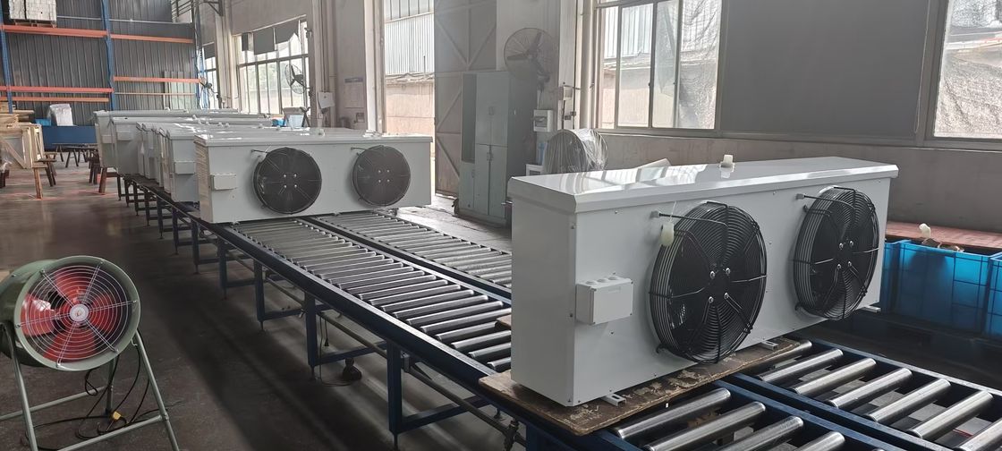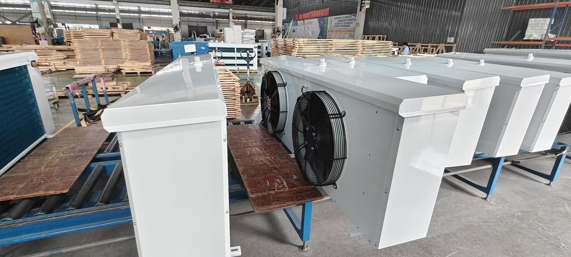 The side outlet ceiling style air cooler is suitable for indoor cooling in various large,medium,and small storage and preservation facioities,as well as cold storage rooms for frozen dishes,food processing rooms,logistics centers,supermarkets,central kitchens,and other indoor spaces.Efficient fan,with large air volume,optional range,low noise,and a casing that can be made of magnesium aluminum plate,stainless steel,spray coated steel plate,etc.Depending on the usage situation,to meet the needs of different customers.